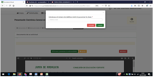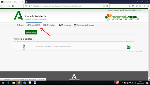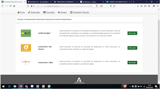 Acceso: https://www.juntadeandalucia.es/educacion/secretariavirtual/solicitudes/
